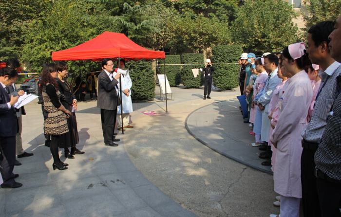 2015年10月14日,延安大學(xué)咸陽(yáng)醫(yī)院在醫(yī)院外科樓及醫(yī)院延年苑舉行外科樓地震疏散演練,據(jù)悉本次地震疏散演練由我院應(yīng)急工作領(lǐng)導(dǎo)小組組織,設(shè)置了導(dǎo)演組,下設(shè)了搶險(xiǎn)疏散組、醫(yī)療救護(hù)組、后勤保障組、通訊聯(lián)絡(luò)組四個(gè)應(yīng)急小組,有三十多個(gè)部室,近500名醫(yī)務(wù)人員和患者共同參與。