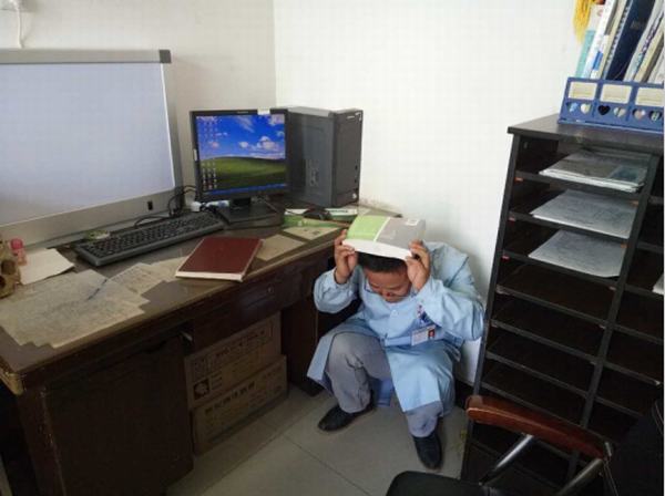 14點(diǎn)30分“演習(xí)正式開(kāi)始!”,隨著演習(xí)總指揮康彥文院長(zhǎng)的一聲令下,地震疏散演練拉開(kāi)序幕。伴隨著三聲長(zhǎng)鳴哨聲,醫(yī)護(hù)人員立即安撫患者情緒,組織人員尋找“安全三角”,并躲避。模擬地震第一次輕微顫動(dòng)后,外科樓各科室人員迅速開(kāi)始找“安全三角”躲藏,醫(yī)護(hù)人員緊急安置正在就醫(yī)的患者。