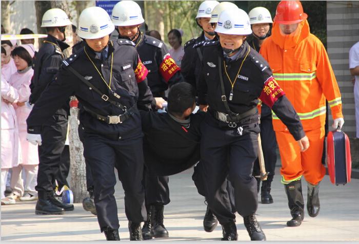 14點(diǎn)45分,通訊聯(lián)絡(luò)組向總指揮匯報(bào)在外科樓四樓手術(shù)室發(fā)現(xiàn)被困人員,總指揮當(dāng)即指示搶險(xiǎn)疏散組攜帶搶救裝備搶救被困傷員,經(jīng)過(guò)10分鐘的緊張營(yíng)救,3名被困的手術(shù)室醫(yī)務(wù)人員脫離危險(xiǎn)區(qū)域。之后地震演練繼續(xù)有序進(jìn)行。