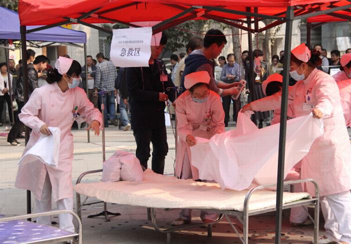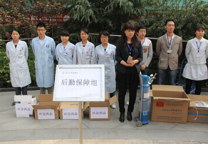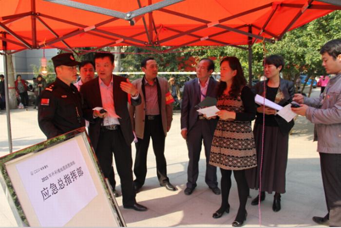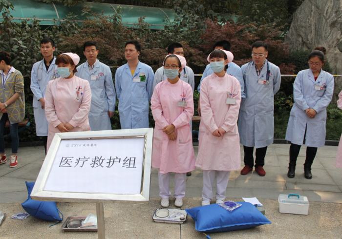 2015年10月21日延安大學(xué)咸陽(yáng)醫(yī)院在醫(yī)院外科樓地震疏散演練的基礎(chǔ)上進(jìn)一步舉行了內(nèi)科樓、西樓、口腔樓、醫(yī)技樓、綜合樓聯(lián)合地震疏散演練,本次地震疏散演練繼續(xù)由我院應(yīng)急工作領(lǐng)導(dǎo)小組組織,設(shè)置了導(dǎo)演組,下設(shè)搶險(xiǎn)疏散組、醫(yī)療救護(hù)組、后勤保障組、通訊聯(lián)絡(luò)組四個(gè)應(yīng)急小組。參演部室增加至五十多個(gè),參加醫(yī)務(wù)人員和患者人數(shù)增至800名余名。全院未參演科室主任和護(hù)士長(zhǎng)(或資深護(hù)士)現(xiàn)場(chǎng)觀摩。