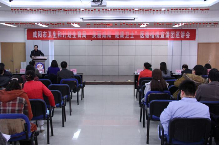 2015 年11月25日下午,咸陽(yáng)市衛(wèi)計(jì)局組織的“美麗咸陽(yáng) 健康衛(wèi)士”醫(yī)德楷模宣講活動(dòng)在我院在綜合樓四樓會(huì)議室舉行。我院常務(wù)副院長(zhǎng)張海濤主持了此次活動(dòng),參加此次活動(dòng)的領(lǐng)導(dǎo)有咸陽(yáng)市衛(wèi)生計(jì)生局胡敏科長(zhǎng)、樊紅霞同志,宣講團(tuán)成員有咸陽(yáng)市第一人民醫(yī)院重癥科主任—焦峰軍、咸陽(yáng)市中心醫(yī)院傳染病科主任—?jiǎng)⒑A帷㈥冎卸皆骸苣?、彩虹醫(yī)院新生兒科護(hù)士長(zhǎng)—張茹、興平市衛(wèi)生局—范樂(lè)、淳化縣衛(wèi)生局—韓陽(yáng)。