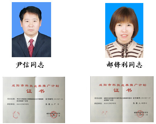 近日,根據(jù)咸陽市科技局《關(guān)于下達(dá)“咸陽市二0一五年度科技成果推廣計(jì)劃”的通知 》(咸政科【2015】175號(hào))的文件精神,我院放療科主任尹信同志領(lǐng)銜申報(bào)的科研項(xiàng)目“單次大劑量低分割精確放射治療胰腺癌的推廣應(yīng)用”和神經(jīng)內(nèi)科十五病區(qū)主任郝鋒利同志領(lǐng)銜申報(bào)的科研項(xiàng)目“咸陽市急性腦卒中事件登記及數(shù)據(jù)庫建設(shè)成果推廣應(yīng)用”成功獲批為“咸陽市2015年度科技成果推廣計(jì)劃”!