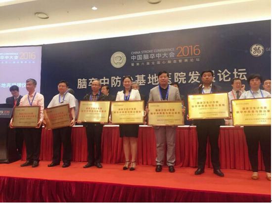 2016年5月6日-8日,全國腦卒中防治領域的專家同道們齊聚北京,共同參加由國家衛(wèi)計委腦卒中篩查與防治工程委員會主辦的“2016年中國腦卒中大會暨第六屆全國心腦血管病論壇”,我院科研教學管理中心副主任韓曉芳和科教部部長王丙聚應邀參加了本次盛會。會上,我院成功被確定為“國家衛(wèi)生計生委腦卒中篩查與防治基地醫(yī)院”,成為省內(nèi)為數(shù)不多的參與此次腦卒中篩查與防治基地授牌儀式的醫(yī)院,并被大會安排由全國人大科教文衛(wèi)委員會副主任、國家衛(wèi)生計生委、腦防委副主任王隴德院士為我院韓曉芳副主任授牌。