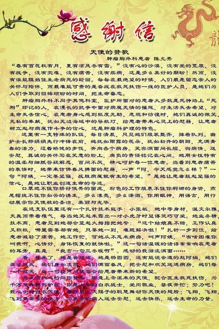 腫瘤胸外科一位患者的感謝信——天使贊歌