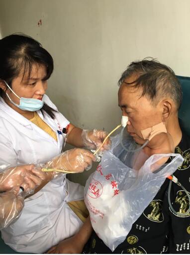梁莉娜醫(yī)生介紹說,吞咽障礙球囊擴張技術(shù),主要應(yīng)用于腦外傷、腦梗死、腦炎等因腦干損傷所致的環(huán)咽肌功能喪失及鼻咽癌放療后造成的環(huán)咽肌良性狹窄。該技術(shù)一般由吞咽治療師和護士配合操作,將一根球囊導(dǎo)管經(jīng)口腔或鼻孔插入食道,確定進入食道并完全穿過環(huán)咽肌后,用分級注水的方式向球囊內(nèi)注水,持續(xù)擴張環(huán)咽肌以恢復(fù)其功能,同時配合吞咽功能障礙基礎(chǔ)訓(xùn)練,電刺激治療儀及冰刺激等手段,效果立竿見影。