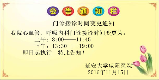 延安大學(xué)咸陽(yáng)醫(yī)院門(mén)診接診時(shí)間變更通知