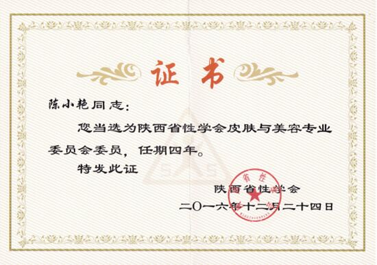 熱烈祝賀我院陳小艷同志當(dāng)選為“陜西省性學(xué)會皮膚與美容專業(yè)委員會”委員