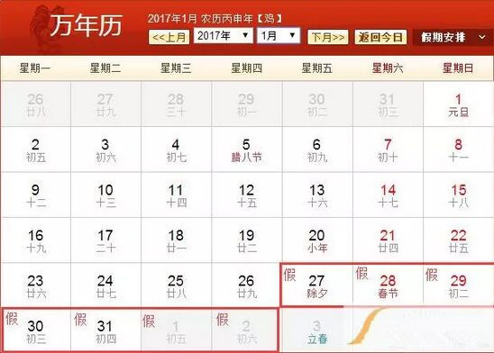 根據(jù)國務(wù)院辦公廳《關(guān)于2017年部分節(jié)假日安排的通知》精神,結(jié)合我院具體情況,我院2017年春節(jié)放假時(shí)間定為:
