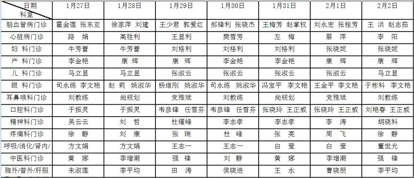 春節(jié)放假期間我院各科日間門診均有值班醫(yī)生照常接診