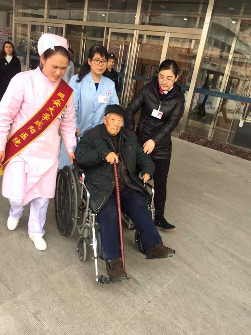 腦血管病院接待科主管王佩耐心將病人安置在接待科并及時(shí)向腦血管病院綜合辦匯報(bào)情況,同時(shí)為老人找來了輪椅讓老人坐著休息,囑咐科室人員武瑩為老人買來了餛飩充饑,讓老人感受到了社會(huì)的溫暖,其他工作人員通過老人的手機(jī),攜帶的證件聯(lián)系親屬,均無人響應(yīng),最終經(jīng)多方打聽,有一位自稱是老人侄子的人說,老人平時(shí)住在敬老院,要求我院將老人送回去