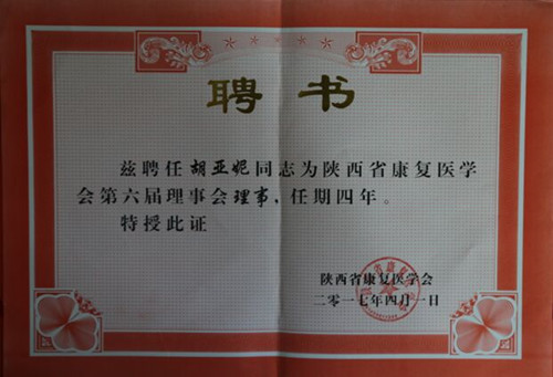 我院康復醫(yī)學專業(yè)是陜西省的咸陽市重點??疲舜伪皇谟桕兾魇】祻歪t(yī)學會單位會員,是對我院康復醫(yī)學專業(yè)的所取得成就的肯定,今后我院將繼續(xù)加強普及康復醫(yī)學知識,推廣先進的康復技術和方法,開展國內(nèi)外學術交流及業(yè)務培訓,促進學科發(fā)展等方面做出應有的貢獻。