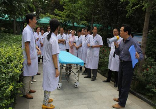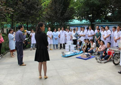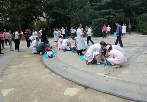 當日下午,按照事先擬定的《破壞性地震醫(yī)療救治演練計劃》的安排,16點整,地震演練正式開始。應急醫(yī)療組所有成員積極響應,攜帶急救物資在3分鐘內(nèi)到達救治現(xiàn)場,集結(jié)完畢。在張海濤總指揮的指導下,應急醫(yī)療組立即啟動醫(yī)療救治應急預案。首先,急診醫(yī)學科護士長對傷員進行病情分級并分配給各小組。隨后,各組組長安排組員積極投身醫(yī)療救治活動中,協(xié)作救治。對心臟驟停的傷員,立即進行心肺復蘇;對骨折的傷員先搬到安全的地方立即給予止血并進行四肢固定;對因砸傷出血的患者進行加壓包扎止血,對皮膚擦傷的患者進行傷口清理……經(jīng)過現(xiàn)場緊急救治后,各組組長向侯安剛副總指揮報告了傷員的救治情況,侯安剛副總指揮經(jīng)統(tǒng)計后立即向張海濤總指揮報告共計11名傷員,重傷3人,輕傷8人,經(jīng)緊急救治,所有傷員均病情穩(wěn)定。最后,張海濤常務副院長、徐京華副院長對演練進行了總結(jié)并指出需要進一步改進之處,此次地震演練按照計劃圓滿完成。