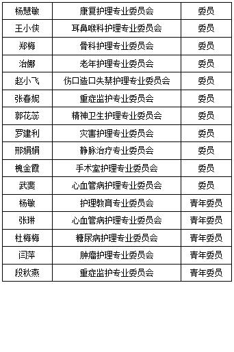 我院徐京華等36位同志分別獲聘為陜西省護(hù)理學(xué)會第九屆理事會各專業(yè)委員會各級別委員