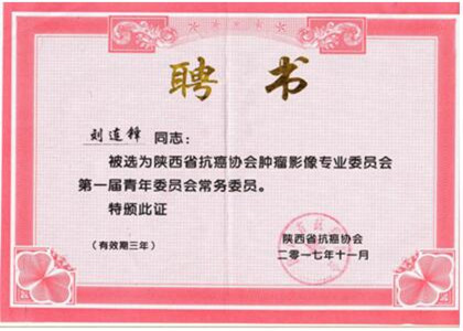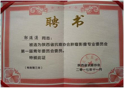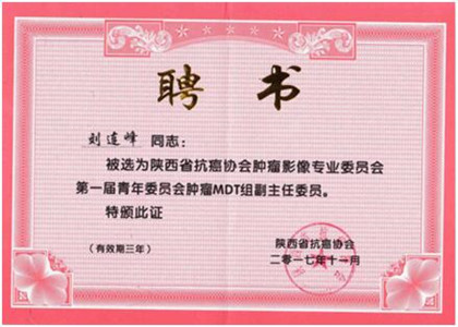 我院劉連鋒同志和郭滿濤同志獲聘為陜西省抗癌協(xié)會腫瘤影像專業(yè)委員會各級別委員