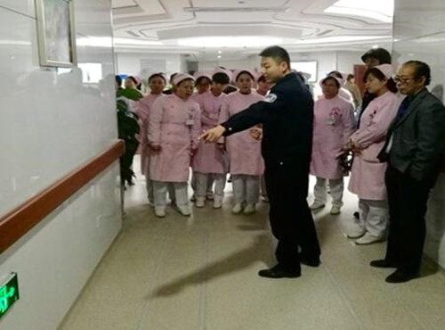 院消防專干寇森講解消防知識(shí)條理清晰,主次分明。使大家對(duì)消防設(shè)施的放置、使用、注意事項(xiàng)及發(fā)生火災(zāi)如何疏散病人,如何逃生自救等有了進(jìn)一步的了解。有效地加深了大家的消防意識(shí)。