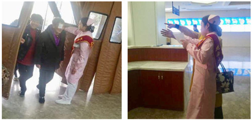 與此同時,已接到另一名導(dǎo)醫(yī)通知的門診醫(yī)生及護士及時趕來。經(jīng)醫(yī)生再次檢查,患者并無大礙。經(jīng)詢問,阿姨是耳鼻咽喉科的一名住院病人,在家屬的陪伴下剛剛做完檢查,在返回途中頭暈跌倒。其他導(dǎo)醫(yī)也早就推來輪椅,大家?guī)头鲎?。阿姨在醫(yī)護人員的陪同下返回病房做進一步的檢查。