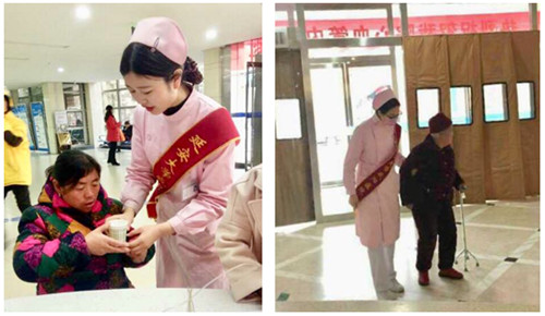 朱雨晴(圖一圖二)與其他導(dǎo)醫(yī)正在為患者服務(wù)