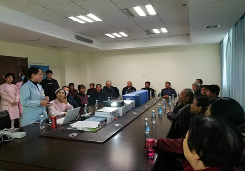 首先由病區(qū)主治醫(yī)生王朋朋為大家介紹了高血壓病的流行病學(xué),引起患者及家屬對高血壓疾病的重視。王醫(yī)生通過舉例子、講真事等形式生動(dòng)形象地向患者及家屬講解了高血壓病的概念、發(fā)病誘因、臨床表現(xiàn)以及服藥的注意事項(xiàng)?;颊吆图覍俜e極響應(yīng),爭先恐后地提出一些日常生活中遇到的問題,王醫(yī)生耐心的一一做好解答,直至患者理解為止。