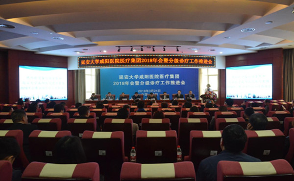 為深入貫徹執(zhí)行國(guó)家及省有關(guān)醫(yī)療集團(tuán)建設(shè)的相關(guān)政策,依據(jù)國(guó)家新一輪醫(yī)療衛(wèi)生改革精神與《咸陽(yáng)市衛(wèi)生局關(guān)于鼓勵(lì)醫(yī)療機(jī)構(gòu)組建醫(yī)療集團(tuán)的意見(jiàn)》(咸政衛(wèi)發(fā)〔2014〕284號(hào))文件精神要求,有效開(kāi)發(fā)和科學(xué)合理利用衛(wèi)生資源,提高醫(yī)療服務(wù)根據(jù)《咸陽(yáng)市衛(wèi)生計(jì)生局關(guān)于征求加大對(duì)口幫扶組建醫(yī)療集團(tuán)意見(jiàn)的通知》和《咸陽(yáng)市衛(wèi)生和計(jì)劃生育局關(guān)于加快分級(jí)診療工作的實(shí)施意見(jiàn)》的精神,在上級(jí)衛(wèi)生部門(mén)的精心指導(dǎo)和大力支持等文件相關(guān)要求,推動(dòng)延安大學(xué)咸陽(yáng)醫(yī)院醫(yī)療集團(tuán)深入持續(xù)健康發(fā)展,促進(jìn)各成員醫(yī)院綜合實(shí)力提升,切實(shí)解決區(qū)域內(nèi)人民群眾就醫(yī)問(wèn)題,2018年3月24日上午,延安大學(xué)咸陽(yáng)醫(yī)院成功組織召開(kāi)延安大學(xué)咸陽(yáng)醫(yī)院醫(yī)療集團(tuán)年會(huì)。咸陽(yáng)市衛(wèi)生局馬劍局長(zhǎng)、延安大學(xué)咸陽(yáng)醫(yī)院醫(yī)療集團(tuán)理事長(zhǎng)康彥文、集團(tuán)辦公室主任沙寧、延安大學(xué)咸陽(yáng)醫(yī)院李衛(wèi)軍董事長(zhǎng)、張海濤副院長(zhǎng)和所有成員醫(yī)院參加會(huì)議。來(lái)自甘肅慶陽(yáng)市、正寧縣、寧縣、涇川、平?jīng)觥⑽寄习姿?、乾縣、禮泉、武功、旬邑、涇陽(yáng)、興平、銅川、周至、彬縣、永壽、市內(nèi)風(fēng)輪醫(yī)院、慈濟(jì)醫(yī)院、新協(xié)和、朝陽(yáng)社區(qū)服務(wù)中心、空港花園衛(wèi)生計(jì)生服務(wù)中心、華星職工醫(yī)院等相關(guān)地區(qū)的44家醫(yī)療機(jī)構(gòu)領(lǐng)導(dǎo)參加會(huì)議。