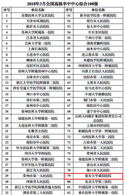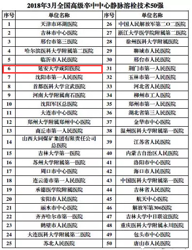 今日,在國家衛(wèi)生計生委腦卒中防治工程委員會辦公室公布的全國高級卒中中心百強名單中,延安大學咸陽醫(yī)院醫(yī)院取得了全國高級卒中中心靜脈溶栓技術榜單第六名、頸動脈支架植入術第三十二名、全國高級卒中中心百強排名第七十九名的好成績!此次評選由國家衛(wèi)生計生委腦卒中防治專家委員會牽頭,依據各地高級卒中中心單位3月份上報的數據評選出最終成績。