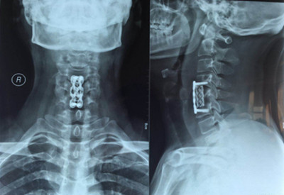 因患者年齡較輕,雙下肢無力癥狀明顯,病變區(qū)脊髓信號改變,保守治療病情會繼續(xù)發(fā)展,后期脊髓神經(jīng)變性,壓迫癥狀加重,嚴(yán)重影響肢體功能,必須盡早手術(shù)。骨一科主任楊志奎帶領(lǐng)曹熙、田濤、張凱迪醫(yī)師為其實施了頸椎前路頸5椎體次全切、椎管減壓植骨融合內(nèi)固定術(shù)。手術(shù)歷時3小時順利完成。術(shù)后第二天,患者雙手指麻木癥狀明顯緩解,四肢關(guān)節(jié)活動均正常。第三天配帶頸托保護(hù)下床活動鍛煉,雙下肢無力癥狀明顯減輕?;颊攥F(xiàn)已康復(fù)出院。