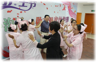 李衛(wèi)軍董事長代表院領(lǐng)導(dǎo)班子為全院護(hù)士送上節(jié)日的祝福,將活動推向高潮。首先,李董事長對我院被推薦至陜西省和咸陽市表彰的優(yōu)質(zhì)護(hù)理服務(wù)先進(jìn)科室腫瘤胸外科、消化內(nèi)科及優(yōu)質(zhì)護(hù)理服務(wù)先進(jìn)個人杜梅梅護(hù)士長、王磊護(hù)士長、趙芬芬護(hù)士表示熱烈祝賀,對我們的護(hù)理工作給予高度的認(rèn)可。其次,著重強(qiáng)調(diào)在今后的工作中,我院護(hù)理發(fā)展任重而道遠(yuǎn),要積極響應(yīng)國家《“健康中國2030”規(guī)劃綱要》的要求,同時,腳踏實地踐行2018年國際護(hù)士會倡導(dǎo)的護(hù)士節(jié)活動主題:“護(hù)理---引領(lǐng)之聲:健康是基本人權(quán),獲得健康、投資健康與經(jīng)濟(jì)增長”。實施精準(zhǔn)康復(fù)、促進(jìn)健康、使患者獲得健康,將是我院近年護(hù)理發(fā)展的重要工作核心。再次,堅定表達(dá)醫(yī)院以后的發(fā)展中,必定會大力支持護(hù)理事業(yè)的長足進(jìn)步,為我們開拓更高的平臺與更廣闊的天地。