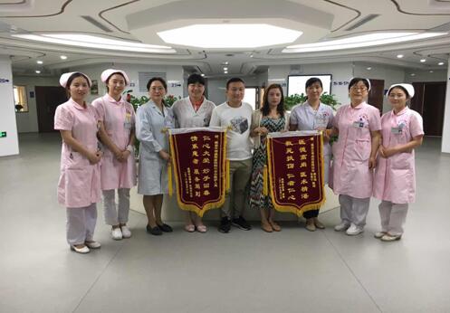 2018年6月1日早上8點(diǎn),婦科還像往常一樣進(jìn)行著交班、查房,病區(qū)大廳里出現(xiàn)了一對熟悉的身影,原來是已經(jīng)出院的李女士在她老公的陪同下走進(jìn)了婦科病區(qū)?!澳銈兪俏覀兊亩魅?,我們特來向你們表示感謝”。只見李女士和她老公手里各端著一面深紅色的錦旗,分別獻(xiàn)給張素寧醫(yī)生及婦科的全體醫(yī)護(hù)人員。