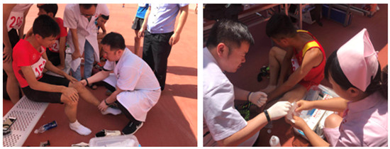 他們?nèi)サ淖钤?,走的最晚??吹淖钫J(rèn)真。當(dāng)然,他們關(guān)注的不是精彩的比賽。他們?nèi)褙炞ⅲo張的眼神快速掃描著賽場里每一個(gè)運(yùn)動(dòng)場所和每一個(gè)運(yùn)動(dòng)健兒。賽場上瞬息萬變,運(yùn)動(dòng)員隨時(shí)會(huì)受傷。一有情況他們馬上上前處置。3天來,處理急性損傷6人,送院就診1人,圓滿的完成了比賽期間醫(yī)療保障工作。受到陜西省田徑管理中心及咸陽市體育局領(lǐng)導(dǎo)的肯定。