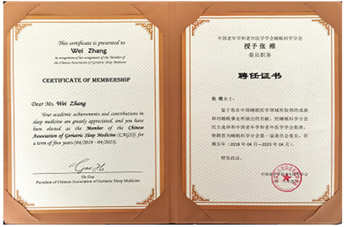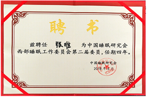2018年4月 睡眠醫(yī)學(xué)科張維主任被聘為中國睡眠研究會(huì)西部工作委員會(huì)委員;中國老年學(xué)和老年醫(yī)學(xué)學(xué)會(huì)睡眠科學(xué)分會(huì)委員。