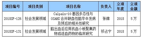 近日,陜西省科技廳公布了2018年度陜西省科技計(jì)劃項(xiàng)目審批結(jié)果,我院2項(xiàng)社會(huì)發(fā)展領(lǐng)域科研項(xiàng)目獲得陜西省科技廳立項(xiàng)資助,資助總額10萬元。其中神經(jīng)內(nèi)科十一病區(qū)兼睡眠醫(yī)學(xué)科副主任醫(yī)師張維在Calpain-10基因多態(tài)性與OSAHS合并缺血性腦卒中發(fā)病及預(yù)后的相關(guān)性研究獲得5萬元的立項(xiàng)資助。