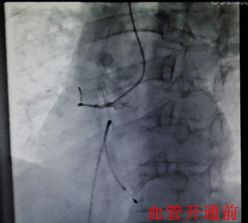 在一陣有效地?fù)尵戎?,患者在氣管插管、呼吸機(jī)輔助呼吸下,先行心臟臨時(shí)起搏器置入,后行左右冠狀動(dòng)脈造影,造影顯示:右冠狀動(dòng)脈呈鼠尾狀,開(kāi)口5mm處100%閉塞,旋支血管中遠(yuǎn)段60—99%彌漫狹窄病變。手術(shù)者立即開(kāi)通右冠狀動(dòng)脈,盡管患者在手術(shù)過(guò)程中不斷出現(xiàn)室速室顫,血壓下降,但隨著右冠狀動(dòng)脈遠(yuǎn)端血流恢復(fù),患者終于生命體征趨于平穩(wěn),安全返回監(jiān)護(hù)室繼續(xù)下一步治療。