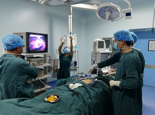 院專家組決定,由主治醫(yī)師李玉強主刀即行腹腔鏡探查術。術中鏡下可見腹腔積膿約1000多毫升,闌尾化膿腫脹,已穿孔,感染十分嚴重。經(jīng)松解腹腔廣泛粘連、切除闌尾,大量溫鹽水沖洗腹腔,大約一小時,手術順利完成。術后7小時,患者已能下床正?;顒?。早晨查房,小伙子握著李醫(yī)生的手“咦咦哇哇”一個勁地說個不停,旁邊劉杰笑著翻譯到:謝謝醫(yī)生,謝謝中國人,謝謝中國,中國真好。 李醫(yī)生打趣兒道:相信你永遠不會忘記中國的。你把闌尾留在了咸陽。瞬間,病房充滿了醫(yī)護人員欣慰的歡笑聲,兩個外籍小伙瞪著茫然的大眼睛也嘿嘿嘿地跟著笑……