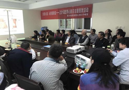 現(xiàn)今隨著生活水平的提高工作,生活壓力的增大,患有心腦血管疾病的人越來越多,心臟疾病是威脅人類生命健康的頭號殺手,為提醒人們的重視,世界心臟聯(lián)盟確定了每年一次的世界心臟日,2018年世界心臟日主題“My heart,your heart”,為響應世界主題,我科于9月28日下午開展以“關愛心臟,從我做起”為主題的宣傳活動,本次活動主講人分別是心內(nèi)vip責任總:王雅寧,主管護師:魏繼云;在院患者及家屬共30余人聆聽了講座。
