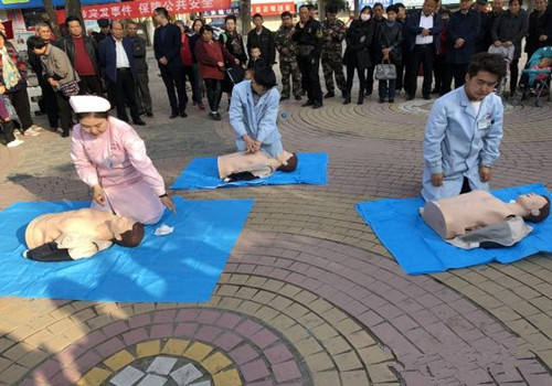 心肺復(fù)蘇應(yīng)急演練,由沙寧院長助理、梁衛(wèi)華科長親自率領(lǐng)急診科的同仁們?yōu)檎腿罕娺M(jìn)行實地應(yīng)急演練,普及急救知識,深得政府各級領(lǐng)導(dǎo)和同志們的贊譽(yù)。
