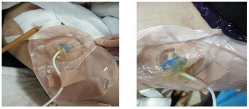 經(jīng)過(guò)反復(fù)的討論和一次次的試驗(yàn)后,實(shí)踐總結(jié)出了造口袋的最佳使用方法:使用一件式造口袋,將造口袋底盤口的直徑,裁剪出與引流管處傷口一致的形狀,將引流管的外接口端從造口底盤穿進(jìn)造口袋,經(jīng)造口袋正面剪的小孔穿出造口袋,用水膠體薄片密封造口袋的縫隙也起到了固定引流管的作用,最后再用3M膠帶進(jìn)行二次固定。