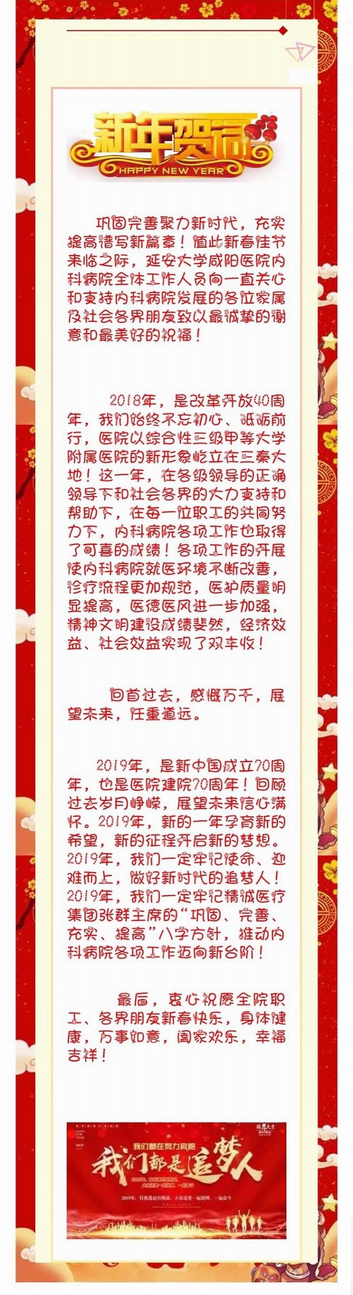 致敬2018,追夢2019!延安大學(xué)咸陽醫(yī)院內(nèi)科病院給您拜年啦!