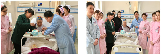 大家一起為張奶奶唱生日歌,切蛋糕,吹蠟燭,合影……一時(shí)間,溫馨活躍的氣氛溢滿病房。在醫(yī)護(hù)人員的陪伴下,張奶奶度過(guò)了一個(gè)難忘的生日 。