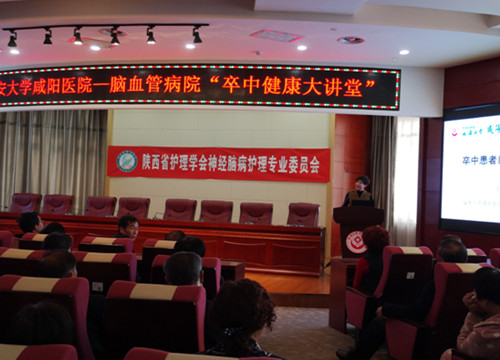 延安大學咸陽醫(yī)院建院70周年在即,腦血管病院于2019年3月20日下午在第三學術廳舉辦“腦卒中患者健康大講堂”活動。本次活動由宋春蘭總護士長主持,神經(jīng)內科劉敏、曹靜、梁偉娟、樊靜護士長和腦血管病院18個臨床科室卒中高危患者、家屬及6名卒中健康管理師約140余人參加本次活動。