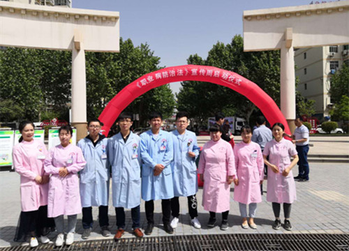 4月25日當(dāng)日我院專門組織職業(yè)病防治宣傳小組醫(yī)護(hù)人員10人前往咸陽國棉二廠社區(qū)。咸陽市衛(wèi)健委及衛(wèi)生監(jiān)督所領(lǐng)導(dǎo)前來參加宣傳周啟動儀式。為了向廣大群眾普及職業(yè)病知識,我院設(shè)立咨詢臺。向來往的群眾講解職業(yè)病相關(guān)知識,發(fā)放宣傳頁。本次活動共發(fā)放宣傳頁200余張,接受咨詢100余人次。重點指出什么是職業(yè)病,勞動者應(yīng)該如何運(yùn)用《職業(yè)病防治法》維護(hù)自己的權(quán)益。