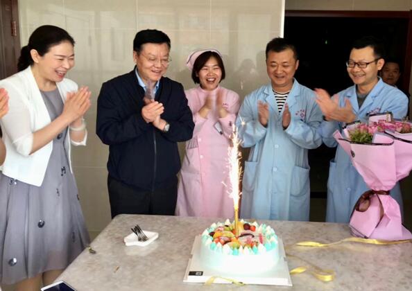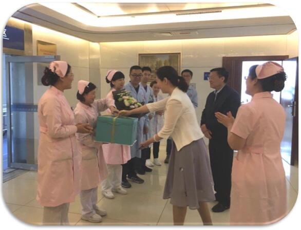 康院長和韓主任為優(yōu)質(zhì)護(hù)理服務(wù)先進(jìn)病區(qū)送蛋糕和鮮花