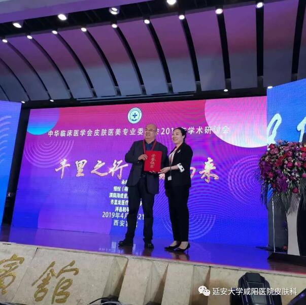 近日,2019年中華臨床醫(yī)學(xué)會(huì)皮膚醫(yī)美專業(yè)委員會(huì)年會(huì)在陜西西安賓館召開(kāi)。本次大會(huì)由陜西分會(huì)承辦,有近1000多位來(lái)自全國(guó)各地的專家參會(huì)。延安大學(xué)咸陽(yáng)醫(yī)院皮膚科主任陳小艷作為中華臨床醫(yī)學(xué)會(huì)皮膚醫(yī)美專業(yè)委員會(huì)秘書長(zhǎng)承辦并主持了本次會(huì)議。