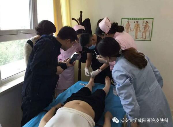 辛利成院長(zhǎng)和朱偉院長(zhǎng)在皮膚病的中醫(yī)外治方面皆有很高的造詣,在學(xué)習(xí)交流過(guò)程中,就火罐、火針等中醫(yī)適宜技術(shù)在皮膚科的應(yīng)用、以及痤瘡的無(wú)痛針清、微創(chuàng)埋線等技術(shù)進(jìn)行切磋學(xué)習(xí)。本次交流讓我們皮膚科的各位醫(yī)務(wù)人員受益匪淺。二位院長(zhǎng)也對(duì)陳小艷主任的微創(chuàng)埋線技術(shù)贊譽(yù)有加,對(duì)我院皮膚科目前的發(fā)展局勢(shì)以及前景表示了極大地認(rèn)可。