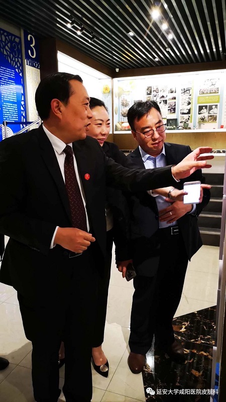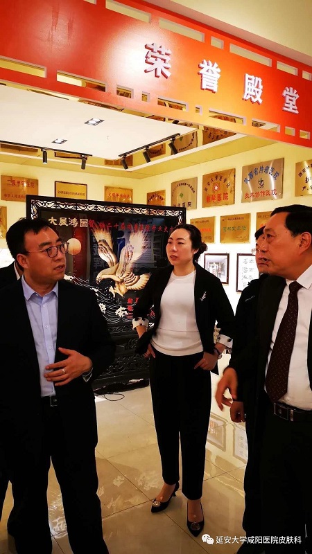 本次會(huì)議的順利召開(kāi),提升了我院皮膚科在皮膚醫(yī)美界的影響力和知名度。會(huì)議結(jié)束后,在陳小艷主任的邀請(qǐng)下,新疆辛氏中醫(yī)皮膚病醫(yī)院院長(zhǎng)辛利成、朱偉一行前來(lái)我院皮膚科交流學(xué)習(xí)。