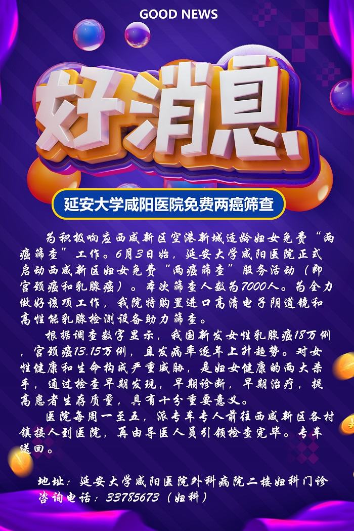 好消息!延安大學(xué)咸陽醫(yī)院免費(fèi)兩癌篩查
