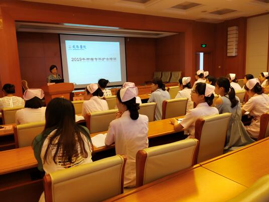為提升腫瘤??谱o(hù)理能力,結(jié)合《??谱o(hù)理領(lǐng)域護(hù)士培訓(xùn)大綱》要求,以及我院實(shí)際情況,2019年7月15日下午,我院腫瘤??谱o(hù)士培訓(xùn)班在心血管病院二十樓第一學(xué)術(shù)廳舉行開班儀式。護(hù)理部楊敏主任、護(hù)理人員繼續(xù)教育管理委員會(huì)主任陳英總護(hù)士長、腫瘤內(nèi)科白潔護(hù)士長以及來自全院的腫瘤相關(guān)科室的30余名護(hù)理骨干一起參加了本次開班儀式。開班儀式由腫瘤內(nèi)科白潔護(hù)士長主持。