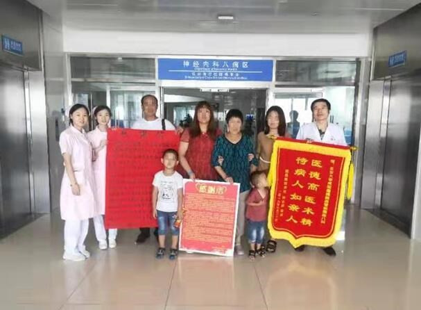 此時,外面?zhèn)鱽砹松跎俾牭降年囮囌坡暸c歡笑聲,原來是我們已經(jīng)康復(fù)出院的老病人攜帶她的女兒、老伴、孫子,懷里抱著的、手里提著的,肩上舉著的是一面面錦旗,一封封感謝信,仿佛是在竭盡所有來向我們表示他們真誠的感謝。十一年前這位病人因?yàn)槟X出血入住我科,經(jīng)過全力治療后康復(fù)出院,十一年后再發(fā)腦出血,入院后,鞏小英主任及王繼恒主管醫(yī)生高度重視,制定了詳盡合理的診治方案。.......與此同時,醫(yī)護(hù)人員間細(xì)心的溝通,以優(yōu)質(zhì)的服務(wù)讓患者及家屬樹立了戰(zhàn)勝疾病的信心,該患者的康復(fù)出院給了我們工作上莫大的肯定,讓我們在工作上有了更大的干勁!
