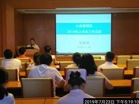 2019年7月23日下午,心血管病院召開了2019年度上班年總結(jié)暨下半年工作安排會議,集團公司吳學(xué)讓秘書長、總院張海濤院長出席會議并講話,主要職能部門有關(guān)領(lǐng)導(dǎo)出席會議,會議由吳棟梁院長主持,心血管病院全體人員參加了會議。