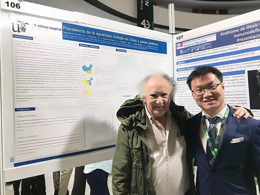 延安大學咸陽醫(yī)院協(xié)調員張國勛醫(yī)師:西班牙塞維利亞大學PhD在讀,主攻多發(fā)性硬化,2018年參加第70屆西班牙神經科年會(LXX Reunión Anual Sociedad Española Neurología),研究生畢業(yè)論文《中國各省份及亞洲周邊國家多發(fā)性硬化流行病學》發(fā)表在西班牙神經學雜志,在多發(fā)性硬化研究中心接受培訓,近一年參與100多位多發(fā)性硬化患者的診治。