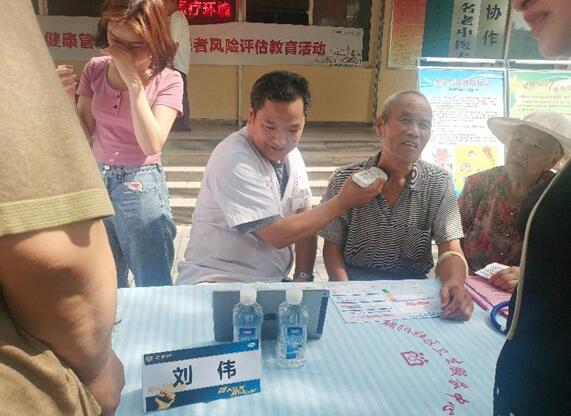 義診現場醫(yī)務人員各盡其責,配合默契,患者信息登記、血壓、血脂、頸動脈斑塊篩查等有條不紊的進行。