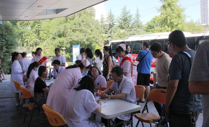 2019年8月15日,為緩解本市血源緊張狀態(tài),保障社會(huì)用血需求,根據(jù)咸陽市衛(wèi)健委和咸陽市中心血站在全市范圍內(nèi)開展無償獻(xiàn)血活動(dòng)的文件精神,為應(yīng)對高溫天氣對無償獻(xiàn)血工作的影響,我院組織全院職工在內(nèi)科樓前開展無償獻(xiàn)血公益活動(dòng)。